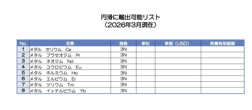 ・各レアメタル 販売始めました。安定供給可能です。